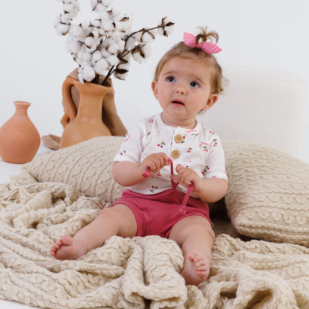 Body Botão Manga Curta Bebê Comfort Premium Cereja