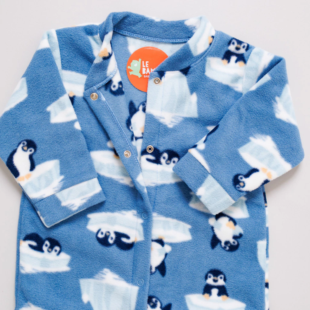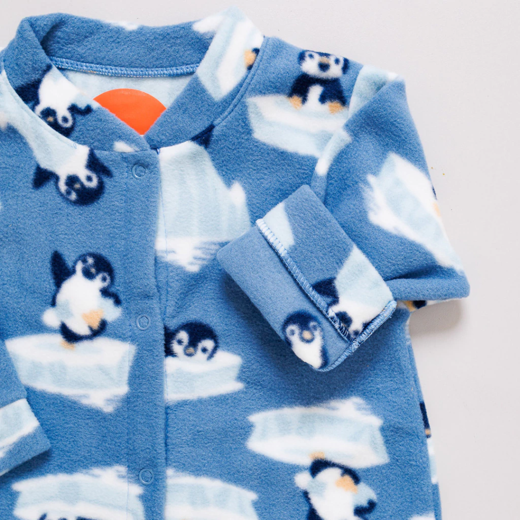 Macacão Bebê Soft com Pé Estampado Azul Petróleo Pinguim