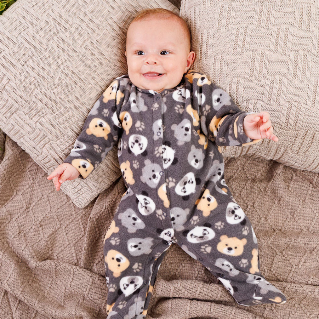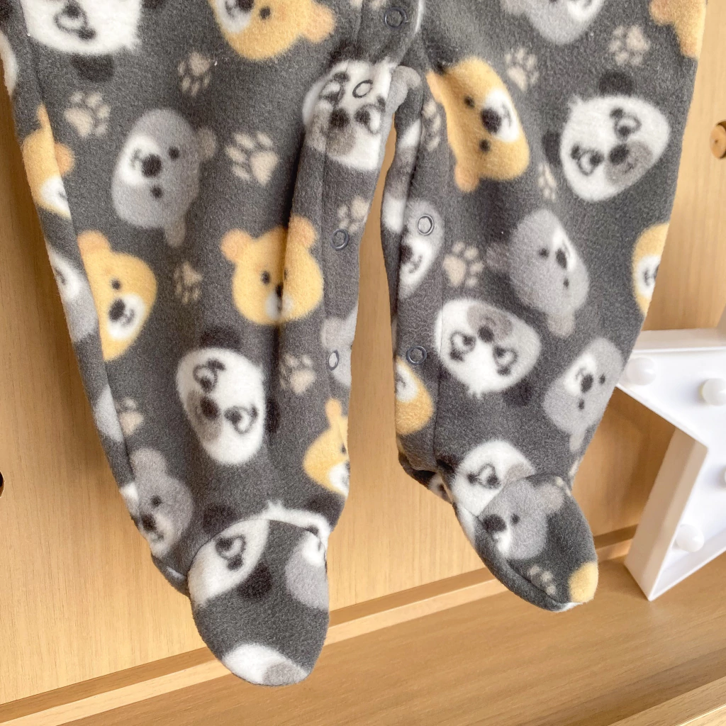 A modelagem tradicional do macacão oferece conforto e mobilidade, enquanto a estampa rotativa adiciona um toque de charme e estilo. A gola redonda proporciona um ajuste suave ao redor do pescoço, enquanto o fechamento em botões de pressão torna a vestimenta fácil e prática. Os fechamentos nos pés garantem que o macacão permaneça no lugar, proporcionando conforto e segurança durante as brincadeiras.