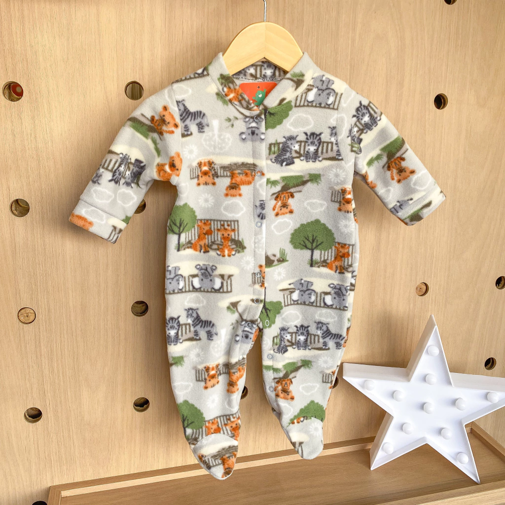 Macacão Bebê Soft com Pé Estampado Cinza Safari