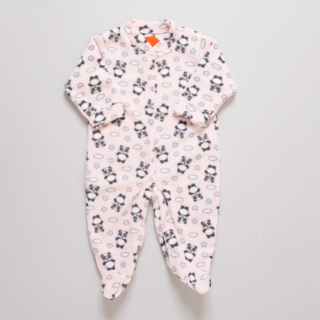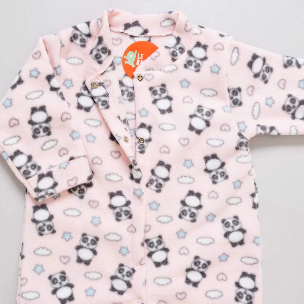 Macacão Bebê Soft com Pé Estampado Rosa Panda